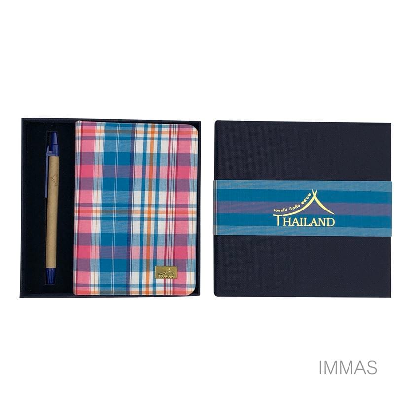 สมุดโน๊ตและสมุดไดอารี่ ของขวัญยอดฮิตที่ทุกองค์กรต้องใช้ประจำปี เพื่อให้หลุดจากความจำเจ เรานำเสนอสมุดโน๊ตจากผ้าไทย เช่น ผ้าขาวม้า,ผ้าไหมลายไทย, ผ้ามัดย้อม เป็นต้น สมุดมีการออกแบบและเลือกสีสรรให้ตรงกับองค์กรได้ สมุดโน๊ตมีทั้งปกกาว, สมุดปกสอด(เปลี่ยนใส้ในได้) สมุดสันห่วง เป็นต้น รวมถึงสมุดปกพาสปอร์ตและสมุดบัญชีธนาคาร เราสามารถออกแบบและพิมพ์เนื้อในด้วยกระดาษถนอนสายตาอย่างดี พร้อมพิมพ์หน้าปฏิทิน และหน้าcompany profile รวมถึงหน้าอื่นๆได้ สันปกมีการเย็บกี่ไสกาวเพิ่มความแข็งแรงให้กับสมุด สมุดมีขนาดA4, A5และ A6 เป็นต้น รับผลิตและติดโลโก้ที่สมุดโน๊ตและสมุดไดอารี่พร้อมกล่องบรรจุภัณฑ์